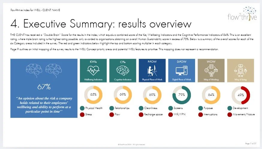 Powered by insights from 44+ scientifically proven factors, behaviours and habits that directly impact brain health, productivity, and performance, this tool brings a powerful, evidence‑based perspective to your WELL submission.